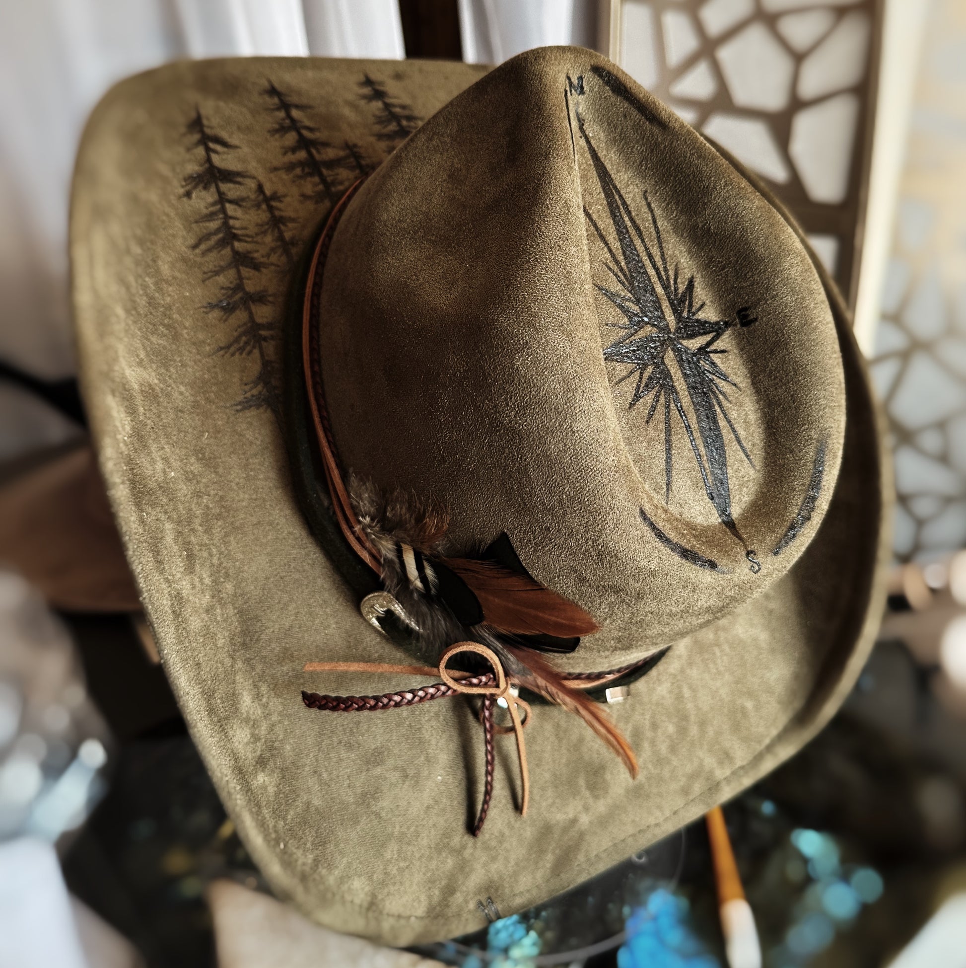 Vegan Suede Classic Cowboy Custom Burned Hat