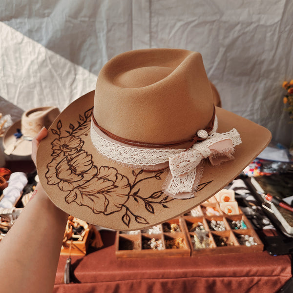 » Hat Bar setup with live burn artistry added on-site for a personalized, hand-burned finish